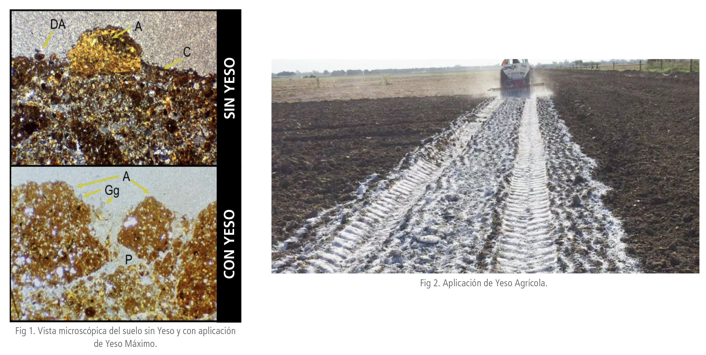 El Calcio del Yeso Agrícola ayuda a la floculación del suelo. La floculación es el acomodamiento de las partículas de arcillas aisladas en microagregados de forma más o menos triangular. La suma de los microagregados van formando de manera estable la estructura del suelo. Se ha demostrado ampliamente que la adición de Yeso Agrícola mejora notablemente las propiedades de los suelos en zonas áridas de la manera que se describe en éste artículo.