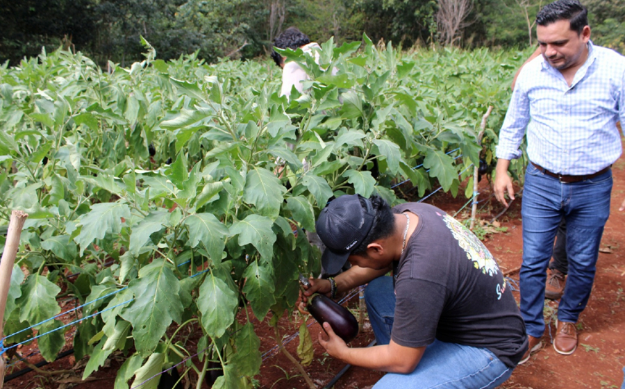 Estudiantes del octavo cuatrimestre de la Ingeniería en Agricultura Sustentable y Protegida de la Universidad Tecnológica del Mayab iniciaron la cosecha de berenjena, cultivo que sembraron el cuatrimestre pasado como parte de la asignatura Sustentabilidad Agrícola, impartida por el ingeniero Cristián Leonel Rosado Xicum.